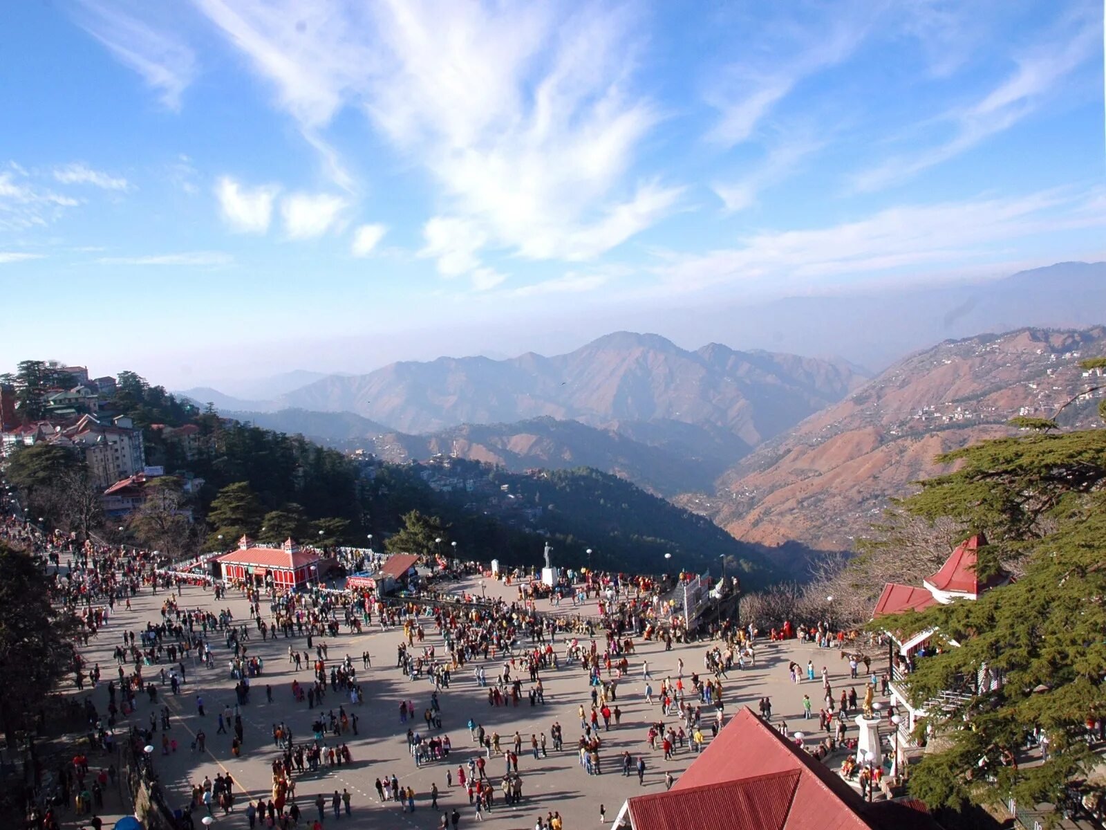 Shimla is often covered along with nearby towns of Kufri, a hill-station almost always covered by snow and Chail. famous for a huge palace and the highest cricket ground in the world. Tourists also visit the famous Jakhu Temple and engage in sightseeing at various viewpoints during their trip to Shimla.The weather is pleasant for most of the months with tourists flocking especially during the summer months. The winters are cold with some days of snow from mid-December till February end.